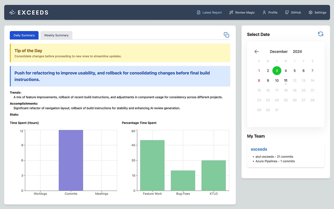 At Exceeds AI, we help enterprises unlock their full potential by turning real work into actionable insights. Say goodbye to outdated reviews and hello to a performance process that’s fair, transparent, and scalable.